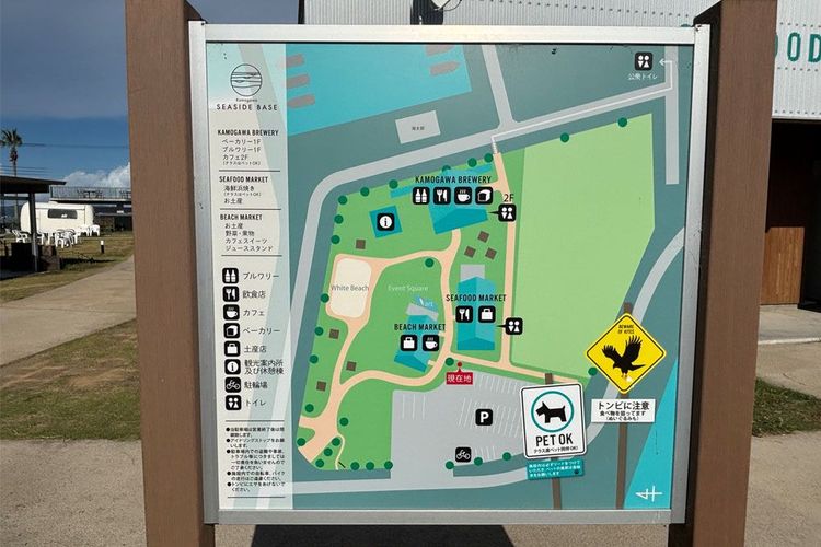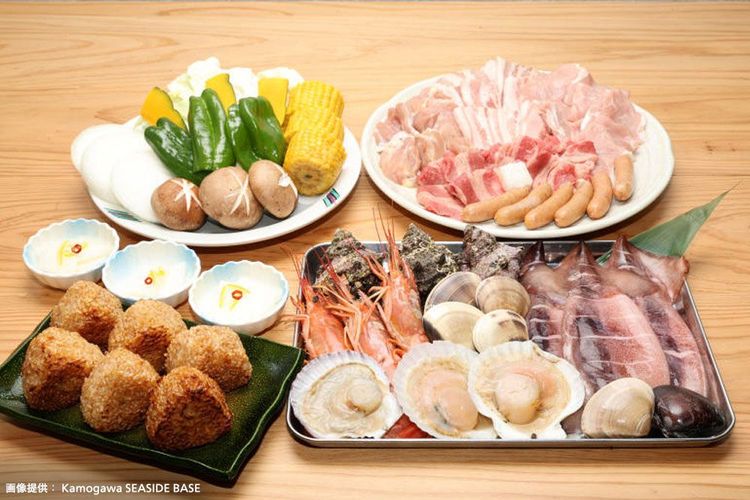 中でもおすすめは、魚介の旨みをダイレクトに楽しめる「海鮮浜焼きセット」。BBQ気分で楽しめる贅沢なランチタイムにぴったりです。広大な芝生や海を望む絶景ロケーションは、ペットとのお散歩にも最適です。鴨川の活気あふれる空間で、海辺ならではのひとときを過ごせます。