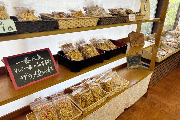 小粒で食べやすいあられから、しっかり歯ごたえのある堅焼きまで、バリエーションも豊富。醤油、ざらめ、唐辛子、のり、ごまなど、多彩なフレーバーも魅力的です。食べきりサイズの108円商品からギフト向けの1,080円商品まであり、お土産としての使い勝手も抜群です。